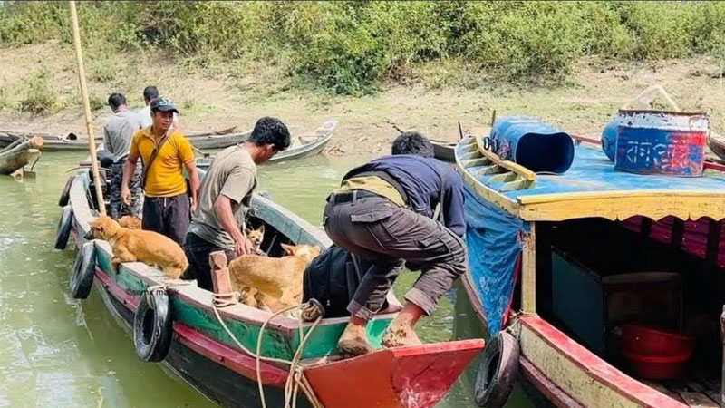 ভিডিওটিতে দেখা যায়, গলায় দড়ি বেঁধে টেনেহিঁচড়ে একের পর এক কুকুর বোটে তোলা হচ্ছে। স্থানীয় সূত্রের দাবি, এসব কুকুর জবাই করে বিক্রি ও ভক্ষণ করার উদ্দেশ্যে পার্শ্ববর্তী দেশ ভারতের মিজোরাম রাজ্যে পাচার করা হচ্ছে।