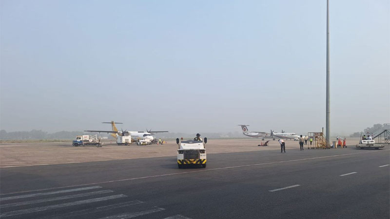 যাত্রীদের ফ্লাইট সংক্রান্ত সর্বশেষ তথ্য জানার জন্য সংশ্লিষ্ট এয়ারলাইনস বা বিমানবন্দর কর্তৃপক্ষের সঙ্গে যোগাযোগ করার পরামর্শ দেওয়া হয়েছে।