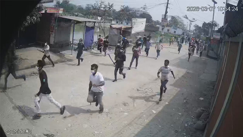 এসময় হামলাকারীদের অনেকের হাতে দেশীয় অস্ত্র রামদা ছিল। হামলাকারীরা কয়েক রাউন্ড গুলি ছুড়ে এবং কয়েকটি ককটেল বিস্ফোরণ ঘটায় বলে অভিযোগ করা হয়েছে।