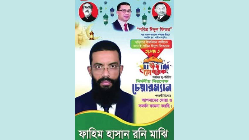 স্থানীয় সূত্রে জানা যায়, ফাহিম হাসান রনি মাঝি ঘড়িষার ইউনিয়নের বাসিন্দা। এক সময় তিনি উপজেলা যুবদলের যুগ্ম-সাধারণ সম্পাদক ছিলেন। ঈদুল ফিতরের শুভেচ্ছা জানাতে তিনি নিজস্ব ছবি সম্বলিত এই নির্বাচনী ফেস্টুন টানান। ফেস্টুনে উপরের বামপাশে বঙ্গবন্ধু শেখ মুজিবুর রহমান, ডানপাশে শহীদ জিয়াউর রহমান এবং মাঝখানে বর্তমান প্রধানমন্ত্রী তারেক রহমানের ছবি স্থান পেয়েছে। এছাড়াও ফেস্টুনে তিনি নিজেকে নিরপেক্ষ ও নির্দলীয় চেয়ারম্যান প্রার্থী হিসেবে উল্লেখ করেছেন।