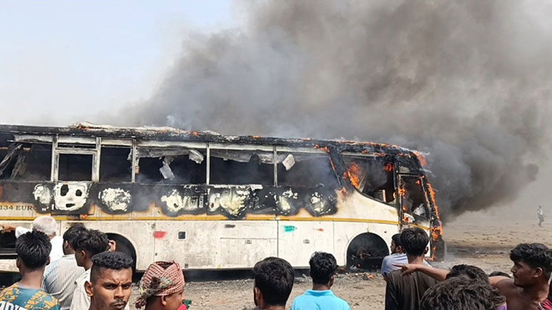 এই তিনটি বাসের ভেতরের অংশ পুরোপুরি পুড়ে গেছে বলে জানিয়েছেন ফায়ার সার্ভিসের এই কর্মকর্তা।