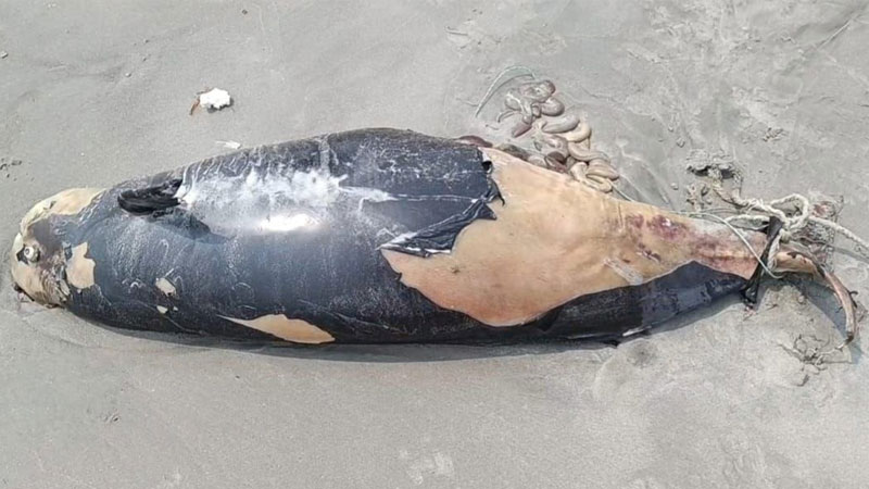 কুয়াকাটা সমুদ্র সৈকতে আবারও একটি ৮ ফুট লম্বা মৃত ডলফিন ভেসে এসেছে। সৈকতের পশ্চিম পাশে জোয়ারের পানির সঙ্গে ভেসে আসা ডলফিনটির শরীরের বেশিরভাগ অংশের চামড়া উঠে গেছে এবং পেট ফেটে গেছে। দড়ি দিয়ে লেজ বাঁধাসহ শরীরের বিভিন্ন স্থানে আঘাতের চিহ্ন দেখা গেছে। স্থানীয় আব্দুল জলিল প্রথম ডলফিনটি দেখতে পান এবং পরে বিষয়টি সংশ্লিষ্ট কর্তৃপক্ষকে জানান।
