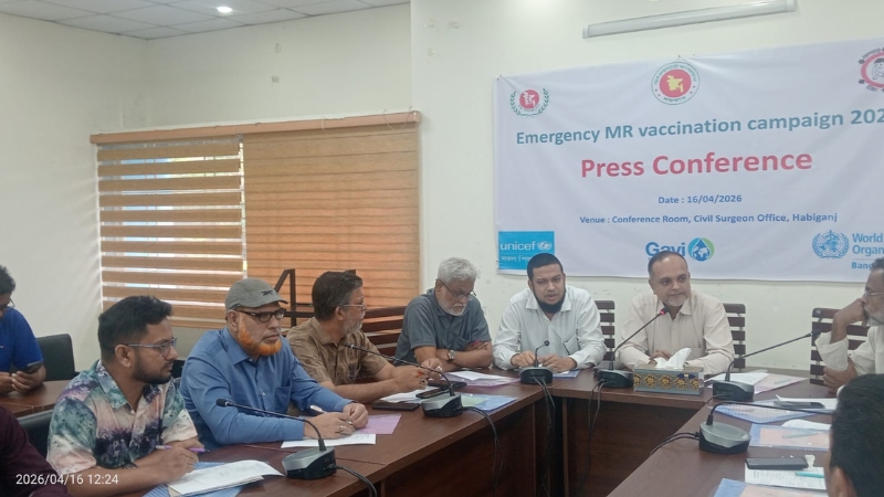 হাম-রুবেলা টিকাদান ক্যাম্পেইন বাস্তবায়নের লক্ষ্যে সংবাদ সম্মেলন করেছেন হবিগঞ্জের সিভিল সার্জন। হবিগঞ্জ জেলায় এ ক্যাম্পেইনের আওতায় মোট ৩ লাখ ২৬ হাজার ৪৭৫ জন শিশুকে টিকাদানের লক্ষ্যমাত্রা নির্ধারণ করা হয়েছে। বৃহস্পতিবার (১৬ এপ্রিল) দুপুরে সিভিল সার্জন কার্যালয়ের সম্মেলন কক্ষে আয়োজিত সংবাদ সম্মেলনে এ তথ্য জানানো হয়।