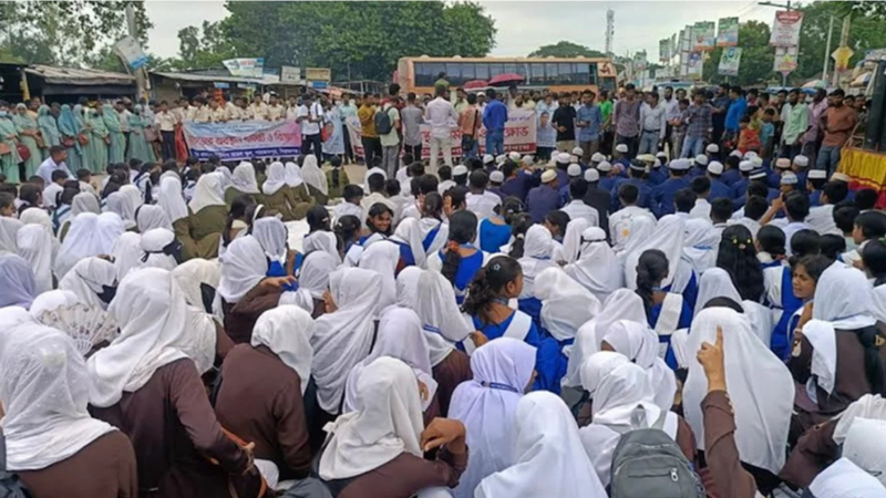 দীর্ঘ প্রতিশ্রুতি পূরণ না হওয়ায় ক্ষুব্ধ শিক্ষার্থীরা, অবরোধে অচল হয়ে পড়ে আঞ্চলিক যোগাযোগ