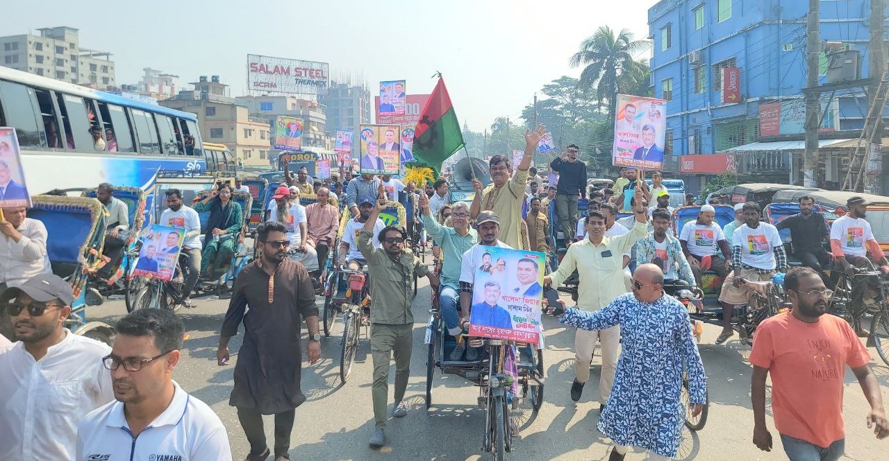 সমাবেশ শেষে বেলা সাড়ে ১০টায় বেলস পার্ক থেকে বিশাল র্যালিটি বের হয়ে আমতলা মোড়, সিএন্ডবি রোড, নথুল্লাবাদ, নতুন বাজার, জেলগেট ও সদর রোড প্রদক্ষিণ করে নগর ভবনের সামনে গিয়ে শেষ হয়। র্যালিতে দুই শতাধিক রিকশা অংশ নেয়। চালকরা ধানের শীষ প্রতীকের টি-শার্ট পরে ব্যানার-ফেস্টুন হাতে শহরজুড়ে শোভাযাত্রা করেন, যা পুরো নগরজুড়ে উৎসবমুখর পরিবেশ সৃষ্টি করে।