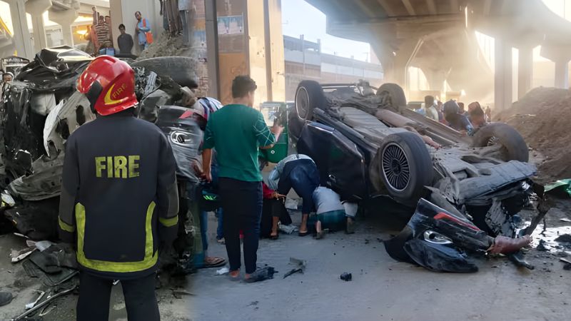 পুলিশ জানিয়েছে, ‘গাড়িটির ছিটকে পড়ার স্থানে বাঁক রয়েছে। এক্সপ্রেসওয়ের রেলিংয়ের ওপর দিয়ে দ্রুতগতিতে যাওয়ায় গাড়িটি নিচে পড়ে যায়।’