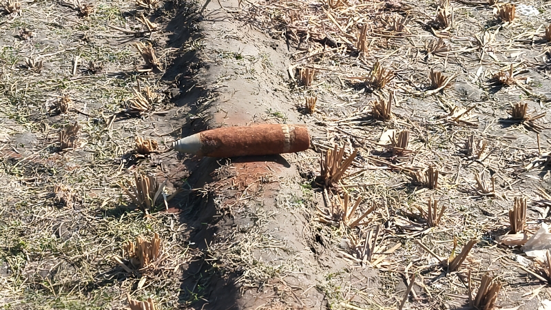 পুলিশ ও স্থানীয়রা জানায়, ওই এলাকার আবুল হোসেনের মালিকানাধীন আবাদী জমি ভেকু (এস্কেভেটর) দিয়ে মাটি সমান করতে থাকেন। এ সময় মাটির প্রায় ২ ফিট নিচে চাপা থাকা অবিস্ফোরিত ও মরিচা ধরা অবস্থায় একটি লোহার তৈরি মর্টার শেল পাওয়া যায়। এটির দৈর্ঘ্য ১৪ ইঞ্চি, পূরত্ব ১০ ইঞ্চি ব্যাসার্ধ ২.৫ ইঞ্চি। ওজন ৩.৫ কেজি। এটির গায়ে এমকে ১৭ লেখা রয়েছে।