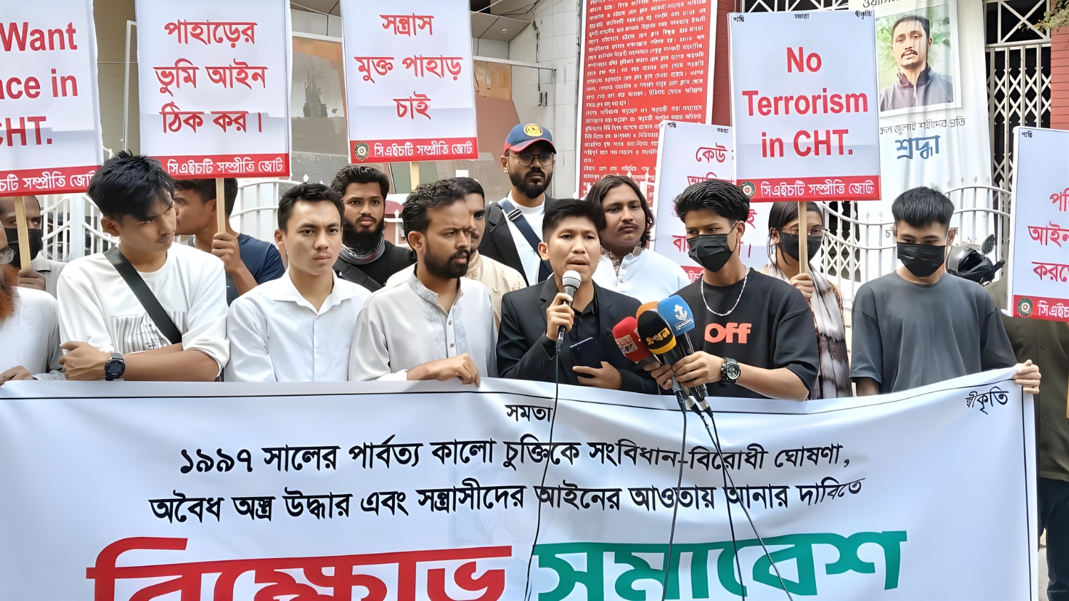 বক্তারা বলেন, ১৯৯৭ সালের পার্বত্য শান্তিচুক্তি ‘কালো চুক্তি’ হিসেবে পরিচিত। তাদের দাবি, এটি সংবিধানবিরোধী হওয়ায় পুনর্মূল্যায়ন বা বাতিল করে অবৈধ অস্ত্র উদ্ধার, সন্ত্রাস নির্মূল এবং আইনশৃঙ্খলা বাহিনীর ক্ষমতা নিশ্চিত করা জরুরি।