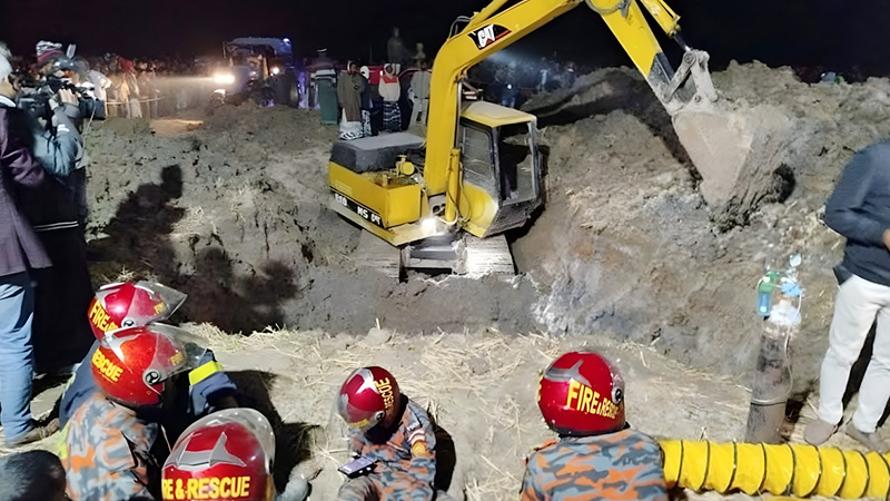এ বিষয়ে ফায়ার সার্ভিসের রাজশাহী স্টেশনের সহকারী পরিচালক দিদারুল ইসলাম বলেন, উদ্ধার কাজ চলছে। গর্ত কাটা শেষে সুড়ঙ্গ করা হচ্ছে।