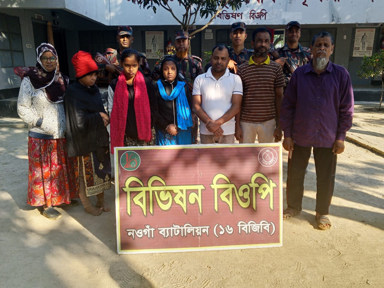১৬ বিজিবি (নওগাঁ ব্যাটালিয়ন) বিভীষণ সীমান্ত ফাঁড়ির কমান্ডার নায়েক সুবেদার আবদুল মান্নান জানান, আটক ব্যক্তিদের জিজ্ঞাসাবাদ করে জানা গেছে তারা যশোর, নড়াইল, খুলনা ও মানিকগঞ্জ জেলার বাসিন্দা। তাদের মধ্যে ২ জন শিশু, ৯ জন নারী ও ৪ জন পুরুষ রয়েছেন।