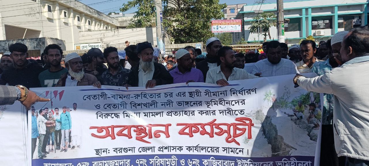 রোববার (১৪ ডিসেম্বর) সকাল ১১টায় বেতাগী উপজেলার শত শত মৎসজীবী, কৃষক ও ভূমিহীন পরিবার জেলা প্রশাসকের কার্যালয়ের সামনে চরের মালিকানা দাবি করে অবস্থান নেন। জেলা প্রশাসক ম্যাজিস্ট্রেট পাঠিয়ে আন্দোলনকারীদের সঙ্গে কথা বলার পর সুরাহার আশ্বাস দিলেও প্রভাবশালীরা ভূমিহীন রিপনের ঘরে আগুন ধরিয়ে দেন।