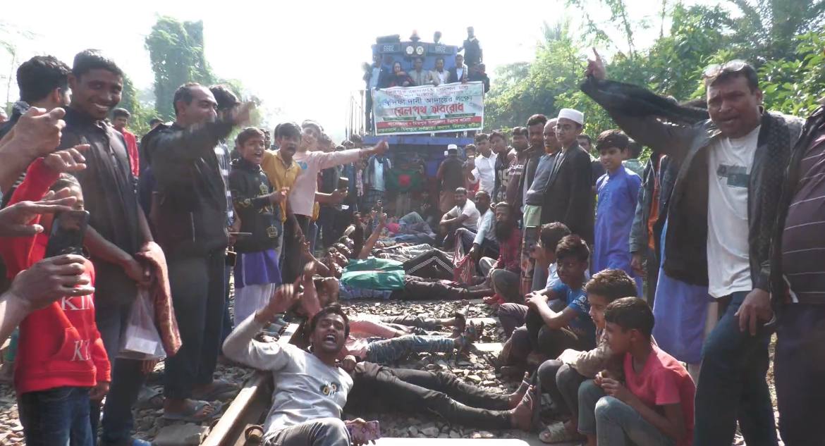 কুষ্টিয়ার মিরপুর উপজেলায় সব ট্রেনের স্টপেজ চালু, অবকাঠামোগত উন্নয়ন, স্টেশন মাস্টার নিয়োগসহ সাত দফা দাবিতে রেলপথ অবরোধ করে বিক্ষোভ করেছে এলাকাবাসী।