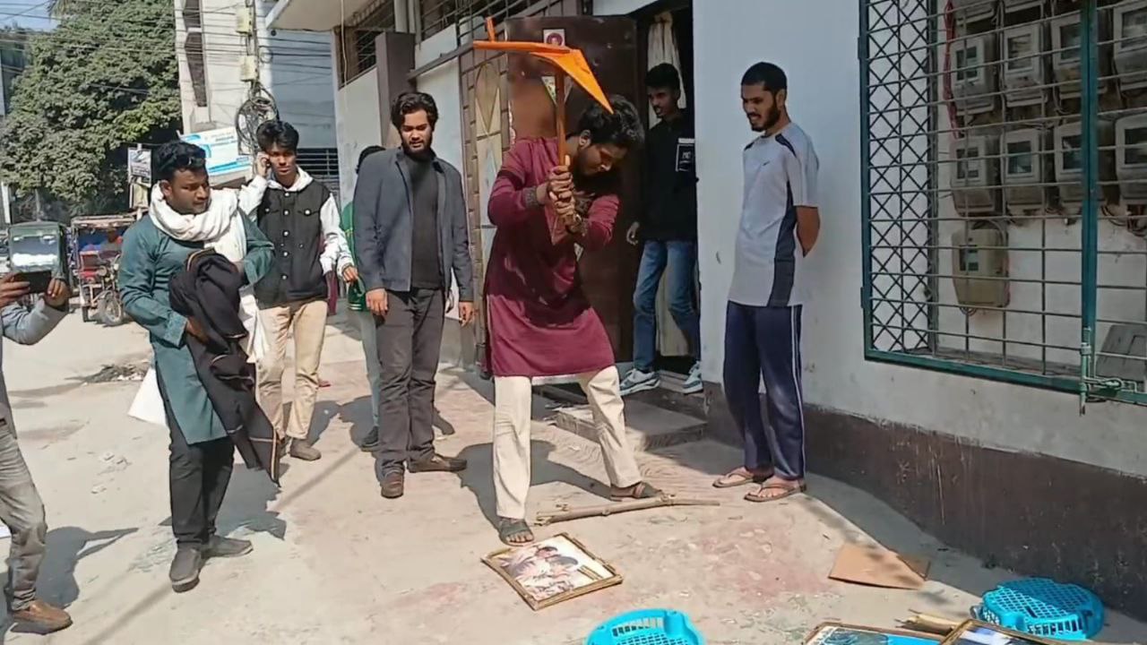 এতে ভয় পেয়ে জাতীয় পাটির নেতাকর্মীরা পালিয়ে যান। পরে অফিস কক্ষে ঢুকে দলটির দলীয় প্রতীক লাঙ্গলসহ প্রতিষ্ঠাতা চেয়ারম্যান হোসাইন মোহাম্মদ এরশাদের বেশ কিছু ছবি ভাংচুর করে ছাত্রজনতা। পরে সেগুলোতে আগুন ধরিয়ে দেওয়া হয়।