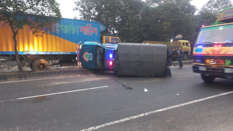 এ বিষয়ে গজারিয়া থানার উপ-পরিদর্শক (এসআই) রুবেল সিকদার জানান, টহলরত দুটি গাড়ি মহাসড়কের পাশে অবস্থান করছিল। এ সময় একটি কাভার্ড ভ্যান সজোরে গাড়ি দুটিকে ধাক্কা দিলে থানা পুলিশ ও হাইওয়ে পুলিশের দুটি গাড়িই উল্টে যায়। এতে হাইওয়ে পুলিশের এক সার্জেন্ট ও পুলিশ সদস্য আহত হন।