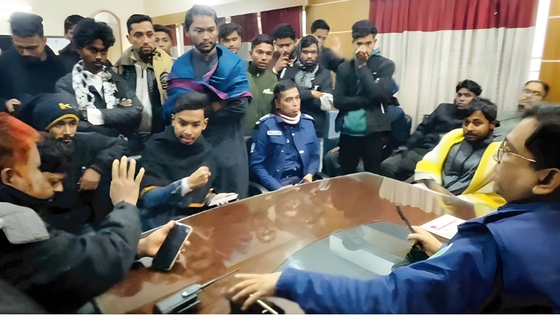 পুলিশ সূত্রে জানা যায়, শুক্রবার ভোরে শায়েস্তাগঞ্জ থানা পুলিশ ছাত্রলীগ কর্মী এনামুল হাসান নয়নকে আটক করে। পরে বৈষম্যবিরোধী ছাত্র আন্দোলনের হবিগঞ্জ জেলার সদস্য সচিব মাহদী হাসানের নেতৃত্বে ছাত্রদের একটি টিম থানায় গিয়ে তাকে নিজেদের জুলাই যোদ্ধা দাবি করে আটক ছাত্রলীগ নেতাকে ছেড়ে দেওয়ার জন্য পুলিশকে চাপ দেন।