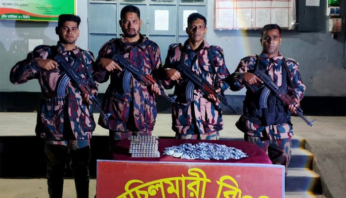 বিজ্ঞপ্তিতে জানানো হয়, গোয়েন্দা তথ্যের ভিত্তিতে শুক্রবার (০৯ জানুয়ারি) আনুমানিক বিকেল ৩টা ৩০ মিনিটে কুষ্টিয়া ব্যাটালিয়নের অধীনস্থ ঠোটারপাড়া বিওপির বাংলাবাজার মাঠপাড়া এলাকা থেকে ভারতীয় ৮ বোতল মদ ও ৯৮ প্যাকেট পাতার বিড়ি উদ্ধার করা হয়।