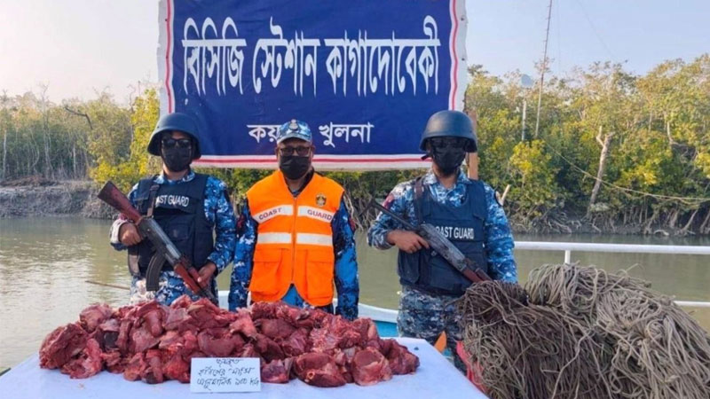 সুন্দরবনের কাগাদোবেকী এলাকায় অভিযান চালিয়ে ১০০ কেজি হরিণের মাংসসহ চার হাজার মিটার ফাঁদ জব্দ করেছে কোস্টগার্ড। মঙ্গলবার (১৩ জানুয়ারি) সকালে কোস্টগার্ড পশ্চিম জোনের (মোংলা) মিডিয়া কর্মকর্তা লেফটেন্যান্ট কমান্ডার মো. মুনতাসীর ইবনে মহসিন জানান, গোপন সংবাদের ভিত্তিতে সোমবার (১২ জানুয়ারি) বিকেলে সুন্দরবনের ঘোলের খাল সংলগ্ন কাগাদোবেকী এলাকায় অভিযান চালায় কোস্টগার্ড।
