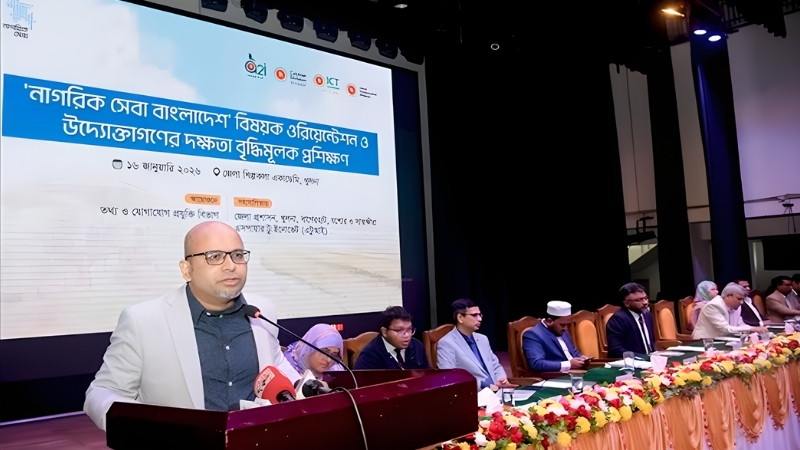 শুক্রবার (১৬ জানুয়ারি) সকালে খুলনা জেলা শিল্পকলা একাডেমি অডিটোরিয়ামে ‘নাগরিক সেবা বাংলাদেশ’ বিষয়ক ওরিয়েন্টেশন ও উদ্যোক্তাদের দক্ষতা বৃদ্ধিমূলক প্রশিক্ষণ অনুষ্ঠানে প্রধান অতিথির বক্তৃতায় তিনি এ কথা বলেন।