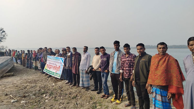 মানববন্ধনে বক্তারা বলেন, বছরের পর বছর ধরে নদী ভাঙনের কারণে শত শত পরিবার ঘরবাড়ি, জমিজমা ও জীবিকা হারাচ্ছে। অনেকেই একাধিকবার বসতভিটা হারিয়ে মানবেতর জীবনযাপন করছেন। অথচ এখন পর্যন্ত কোনো স্থায়ী সমাধানের উদ্যোগ নেওয়া হয়নি। দ্রুত নদী ভাঙন রোধে ব্যবস্থা নেওয়ার দাবি জানান তারা।