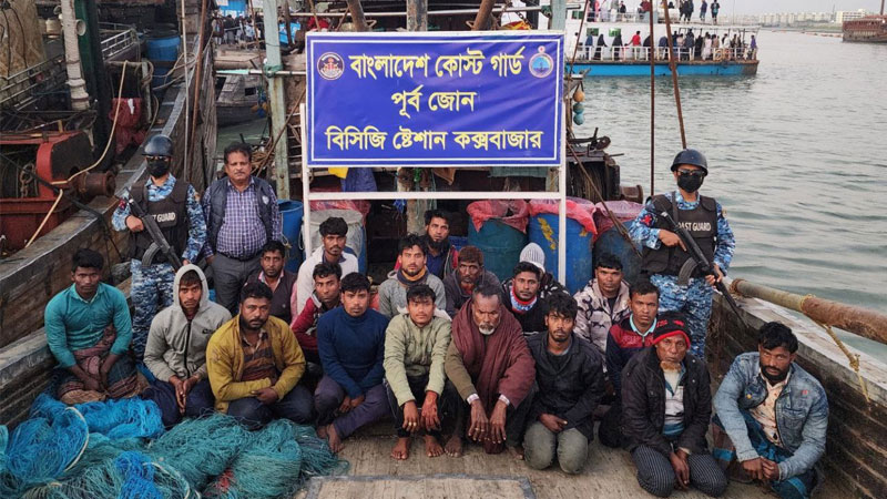 কক্সবাজার সংলগ্ন গভীর সমুদ্রে বাংলাদেশ কোস্টগার্ডের বিশেষ অভিযানে দুটি অবৈধ আর্টিসানাল ট্রলিং বোট, বিপুল পরিমাণ ট্রলিং জাল ও সামুদ্রিক মাছসহ ৩৪ জন জেলেকে আটক করেছে কোস্টগার্ড।