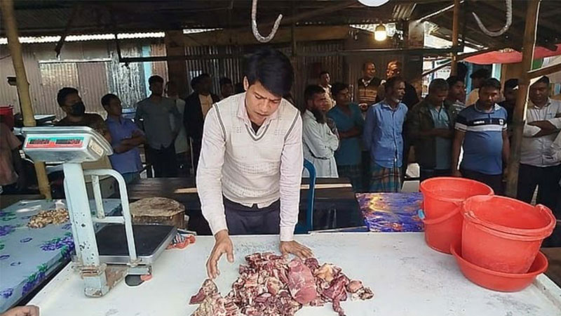 পরে ভ্রাম্যমাণ আদালত বসিয়ে সহকারী কমিশনার (ভূমি) ও নির্বাহী ম্যাজিস্ট্রেট আনোয়ার হোসাইন একরামুল হককে ১০ হাজার টাকা জরিমানা করেন এবং অনাদায়ে এক মাসের কারাদণ্ডের আদেশ দেওয়া হলেও তিনি তাৎক্ষণিকভাবে জরিমানার অর্থ পরিশোধ করেন। অভিযানে জব্দ করা পচা মাংস জনস্বার্থে ধ্বংস করে মাটিতে পুঁতে ফেলা হয়।