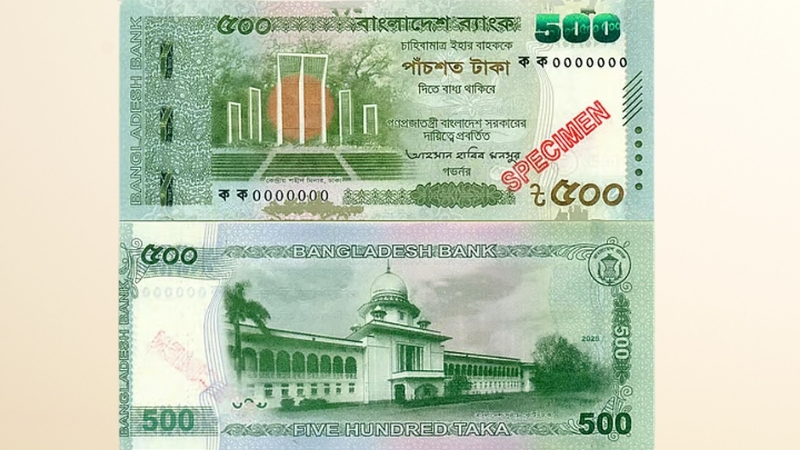 এর আগে গত মঙ্গলবার বাংলাদেশ ব্যাংকের যোগাযোগ ও প্রকাশনা বিভাগের (ডিসিপি) এক বিজ্ঞপ্তিতে বলা হয়েছিল, ‘বাংলাদেশের ঐতিহাসিক ও প্রত্নতাত্ত্বিক স্থাপত্য’ শীর্ষক নতুন ডিজাইন ও সিরিজের সকল মূল্যমানের (১০০০, ৫০০, ২০০, ১০০, ৫০, ২০, ১০, ৫ ও ২ টাকা) নতুন নোট মুদ্রণের কার্যক্রম গ্রহণ করেছে বাংলাদেশ ব্যাংক। এর মধ্যে ১০০০, ১০০, ৫০ ও ২০ টাকা মূল্যমানের নোট বাজারে প্রচলনে দেওয়া হয়েছে। এ পর্যায়ে গভর্নর ড. আহসান এইচ মনসুরের সই করা নতুন ডিজাইন ও সিরিজের ৫০০ টাকা মূল্যমানের ব্যাংক নোট ৪ ডিসেম্বর থেকে প্রথমবারের মতো বাজারে প্রচলনে দেওয়া হবে।