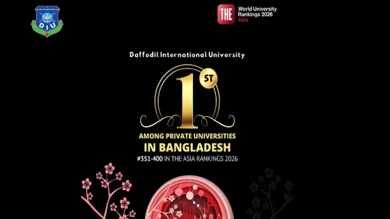 ড্যাফোডিল ইন্টারন্যাশনাল ইউনিভার্সিটি (ডিআইইউ) টাইমস হায়ার এডুকেশন (টিএইচই) প্রকাশিত এশিয়া ইউনিভার্সিটি র্যাঙ্কিং ২০২৬-এ বাংলাদেশের বেসরকারি বিশ্ববিদ্যালয়গুলোর মধ্যে প্রথম এবং সরকারি ও বেসরকারি বিশ্ববিদ্যালয় মিলিয়ে তৃতীয় স্থান অর্জন করেছে।