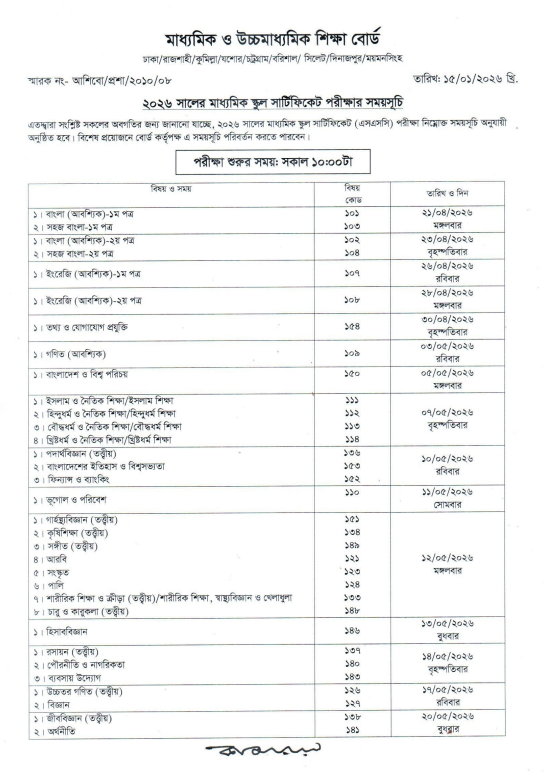 বৃহস্পতিবার বোর্ডের এক বিজ্ঞপ্তিতে এ সূচি প্রকাশ করা হয়।