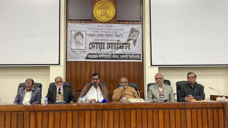 রাজশাহী বিশ্ববিদ্যালয়ের (রাবি) জাতীয়তাবাদী শিক্ষক, কর্মকর্তা ও শিক্ষার্থীদের উদ্যোগে বিএনপির সাবেক চেয়ারপারসন বেগম খালেদা জিয়ার রুহের মাগফেরাত কামনায় দোয়া মাহফিল অনুষ্ঠিত হয়েছে।রোববার (১৮ জানুয়ারি) বিকেল ৩টায় বিশ্ববিদ্যালয়ের সিনেট ভবনে এ মাহফিল অনুষ্ঠিত হয়।