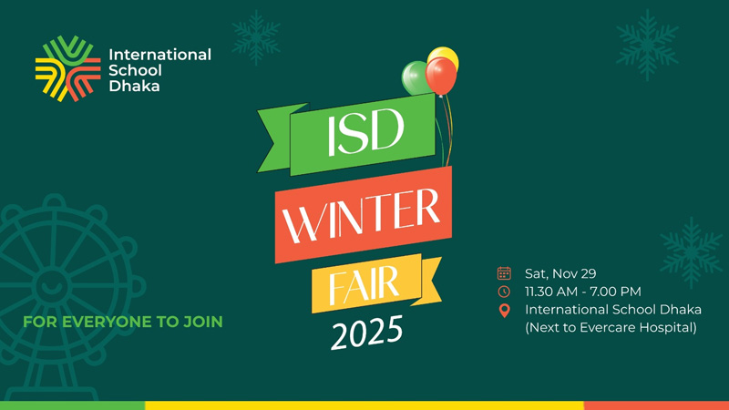 আইএসডি’র বার্ষিক এ আয়োজন, ‘উইন্টার ফেয়ার,’ রাজধানীর বসুন্ধরায় স্কুলটির ক্যাম্পাসে আগামী ২৯ নভেম্বর (শনিবার), বেলা সাড়ে ১১টা থেকে সন্ধ্যা ৭টা পর্যন্ত অনুষ্ঠিত হবে। উৎসবের আমেজ ও ঐক্যবদ্ধ থাকার চেতনা নিয়ে মেলায় থাকবে বিনোদনমূলক বিভিন্ন কার্যক্রম।
