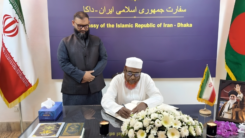 ইরানের সর্বোচ্চ ধর্মীয় নেতা আয়াতুল্লাহ আলী খামেনির প্রতি সম্মান জানিয়ে ঢাকায় অবস্থিত ইরান দূতাবাসে সংরক্ষিত খোলা শোক বইয়ে স্বাক্ষর করেছেন জামায়াতে ইসলামীর সেক্রেটারি জেনারেল মিয়া গোলাম পরওয়ার। শুক্রবার (৬ মার্চ) সকালে তিনি শোক বইয়ে স্বাক্ষর করে বাংলাদেশ জামায়াতে ইসলামীর পক্ষ থেকে ইরান সরকার ও জনগণের প্রতি গভীর সমবেদনা জানান।