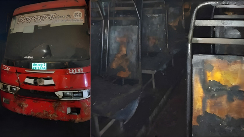 এদিকে ঘটনার খবর পেয়ে ফায়ার সার্ভিসের একটি ইউনিট ঘটনাস্থলে পৌঁছে আগুন নিয়ন্ত্রণে আনে। আগুনে বাসের ভেতরের আসন ও জানালার গ্লাস সম্পূর্ণভাবে পুড়ে গেছে।