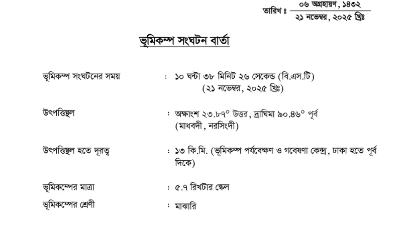 কিন্তু প্রশ্ন উঠছে, মাধবদীর যেই ভূমিকম্প সারাদেশে, বিশেষ করে ঢাকায় যে তীব্র আতঙ্কের জন্ম দিয়েছে তার কারণ কি? কিংবা ঢাকা শহরে ব্যাপক ঝাঁকুনি দেওয়া এই ভূমিকম্প সম্পর্কে আর কী জানা যাচ্ছে?