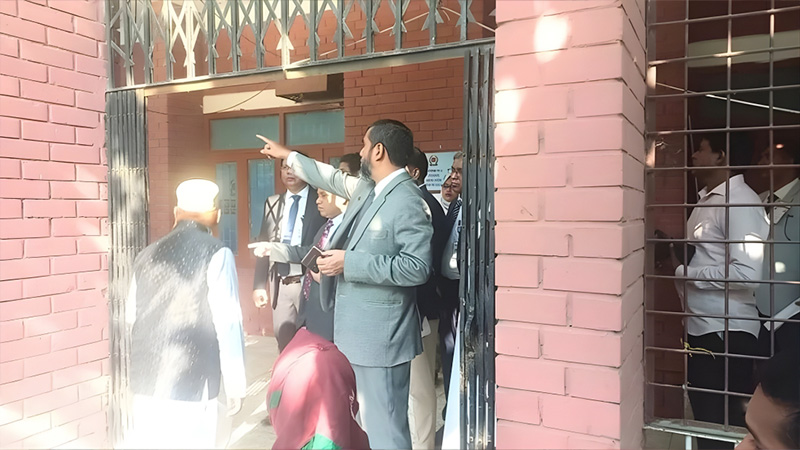ভোটগ্রহণ শুরুর এক ঘণ্টা পর কেন্দ্রে আসেন নির্বাচন কমিশনার আবুল ফজল মো. সানাউল্লাহ। তিনি ভোটকেন্দ্রের হ-য-ব-র-ল অবস্থা দেখে কর্মকর্তাদের প্রতি ক্ষোভ প্রকাশ করেন। ভোট দিতে একজনের কত সময় লাগে তা নিজেই তদারকি করতে শুরু করেন। পুরুষ ও নারী ভোটকেন্দ্রের জন্য ২০ জন করে ভোটার বাছাই করে নতুনভাবে ভোটগ্রহণ কার্যক্রম শুরু করেন।