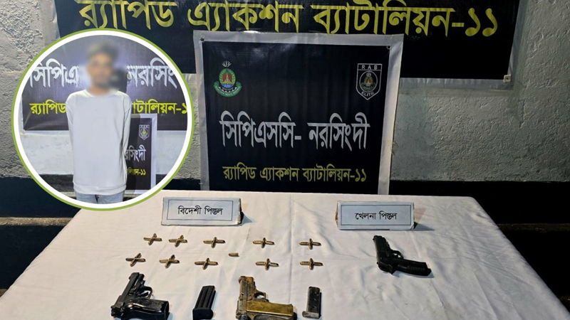 র্যাব জানায়, অভিযানকালে ওই স্থান থেকে ২টি বিদেশি পিস্তল, ২টি ম্যাগাজিন, ১টি খেলনা পিস্তল এবং ৪১ রাউন্ড গুলি উদ্ধার করা হয়েছে। এ ঘটনায় মো. ফয়সাল (২৫) নামে একজনকে আটক করা হয়েছে। পাশাপাশি হাদিকে গুলির ঘটনায় মূল অভিযুক্ত ফয়সাল করিম মাসুদের বাবা ও মাকেও গ্রেপ্তার করা হয়েছে।
