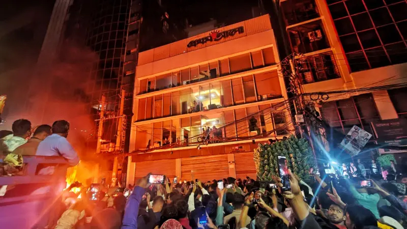 জাতীয় দৈনিক প্রথম আলো ও ডেইলি স্টারের কার্যালয়ে হামলা ও ভাঙচুরের পাশাপাশি অগ্নিসংযোগের ঘটনাও ঘটেছে। বৃহস্পতিবার (১৮ ডিসেম্বর) দিবাগত রাত ১২টার দিকে হামলা শুরু হয় পত্রিকা অফিসটিতে।