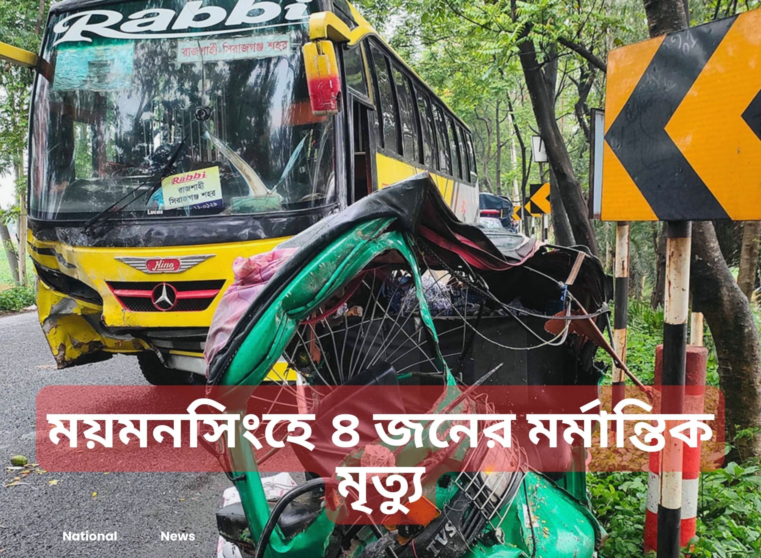 শনিবার সকাল সাড়ে ৮টার দিকে ময়মনসিংহ শেরপুর সড়কের বাগুন্দা নামক স্থানে এ দুর্ঘটনা ঘটে। প্রত্যক্ষদর্শীরা জানান, বিপরীত দিক থেকে আসা একটি যাত্রীবাহী বাসের সঙ্গে একটি পিকআপ ও একটি অটোরিকশার মুখোমুখি সংঘর্ষ হয়। সংঘর্ষ এতটাই ভয়াবহ ছিল যে, অটোরিকশাটি দুমড়ে-মুচড়ে যায় এবং ঘটনাস্থলেই তিনজন নিহত হন। পরে হাসপাতালে নেওয়ার পর আরেকজনের মৃত্যু হয়। নিহতদের মধ্যে একজন নারী ও একজন শিশু রয়েছে।
