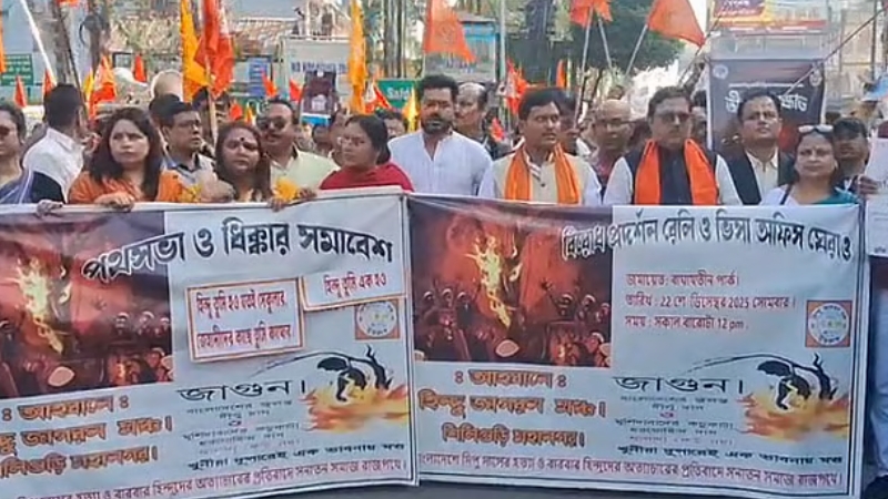 জানা যায়, বিশ্ব হিন্দু পরিষদ (বিএইচপি), হিন্দু জাগরণ মঞ্চ ও শিলিগুড়ি মহানগর সংগঠনের সদস্যরা সোমবার শিলিগুড়িতে বাংলাদেশের ভিসা কেন্দ্রে ভাঙচুর চালান। পরে আন্দোলনকারীদের পক্ষ থেকে পাঁচজনের একটি প্রতিনিধিদল ভিসা অফিসে গিয়ে কর্তৃপক্ষের সঙ্গে কথা বলে এবং প্রতিবাদস্বরূপ ভিসা অফিস বন্ধ রাখতে বলে।