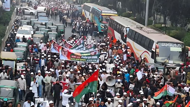 রাজধানীর বিভিন্ন জায়গা থেকে বিমানবন্দর অভিমুখে পায়ে হেঁটে মিছিল নিয়ে তারেক রহমানকে স্বাগত জানাতে ঢল নেমেছে হাজার হাজার নেতাকর্মীর।