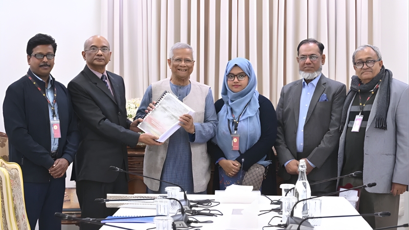 রোববার (৪ ডিসেম্বর) বিকেলে রাষ্ট্রীয় অতিথিভবন যমুনায় প্রতিবেদন জমা দেয় কমিশন। এ সময় উপস্থিত ছিলেন কমিশনের সভাপতি বিচারপতি মইনুল ইসলাম চৌধুরী, সদস্য বিচারপতি মো. ফরিদ আহমেদ শিবলী, নূর খান লিটন, নাবিলা ইদ্রিস ও সাজ্জাদ হোসেন। আরও উপস্থিত ছিলেন উপদেষ্টা আদিলুর রহমান খান ও প্রধান উপদেষ্টার মুখ্য সচিব সিরাজউদ্দিন মিয়া।
