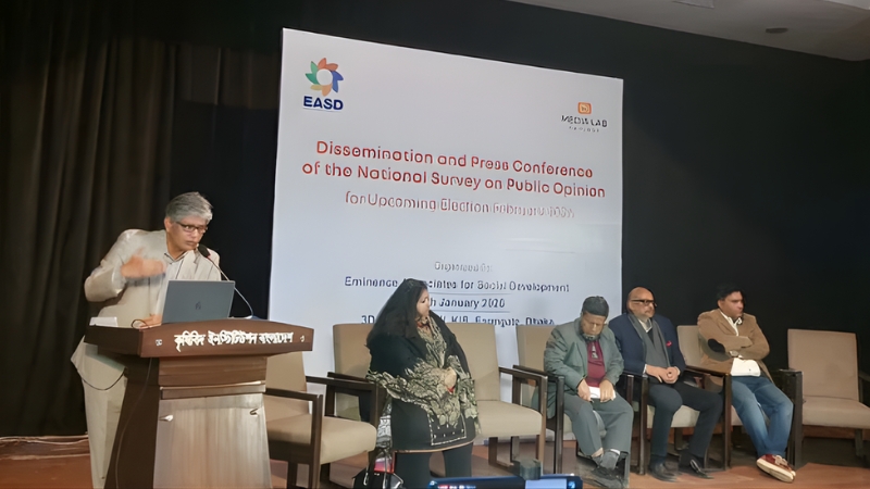 সোমবার (৫ ডিসেম্বর) বিকেলে রাজধানীর ফার্মগেটের কৃষিবিদ ইন্সটিটিউট (কেআইবি) মিলনায়তনে জরিপের ফলাফল তুলে ধরেন ইএএসডির প্রধান নির্বাহী কর্মকর্তা শামীম হায়দার তালুকদার।