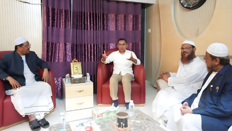 নির্বাচন-পরবর্তী রাজনৈতিক সৌহার্দ্য ও ইতিবাচক রাজনীতির বার্তা দিতে ইসলামী আন্দোলন বাংলাদেশের আমির মুফতি সৈয়দ মুহাম্মাদ রেজাউল করীমের (চরমোনাই পীর) বাসায় সৌজন্য সাক্ষাৎ করতে যান বাংলাদেশ জাতীয়তাবাদী দলের (বিএনপি) চেয়ারম্যান তারেক রহমান।