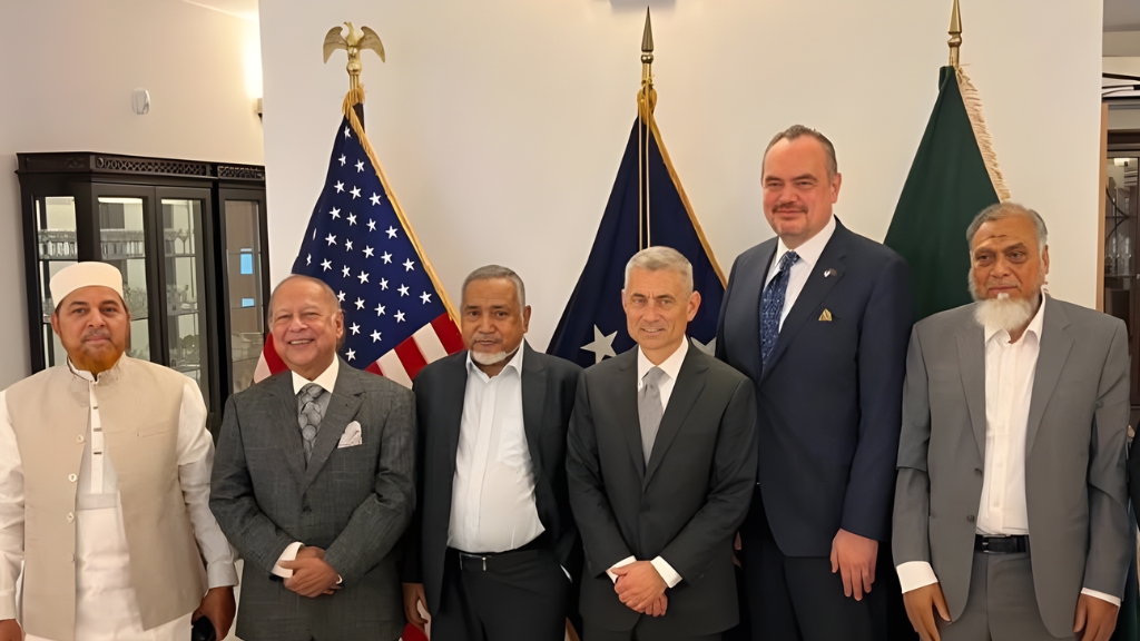 ঢাকায় সফররত দক্ষিণ ও মধ্য এশিয়া বিষয়ক মার্কিন সহকারী পররাষ্ট্রমন্ত্রী পল কাপুরের সঙ্গে বৈঠক করেছে বাংলাদেশ জামায়াতে ইসলামীর একটি প্রতিনিধি দল। বৃহস্পতিবার (৫ মার্চ) সকালে রাজধানীর গুলশানে মার্কিন রাষ্ট্রদূতের বাসভবনে জামায়াতের প্রতিনিধিদলের সঙ্গে এ বৈঠক অনুষ্ঠিত হয়।