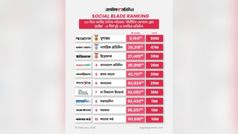 সোশ্যাল ব্লেড–এর এই র্যাংকিং নির্দিষ্ট সময়ের ভিউ ও সামগ্রিক পারফরম্যান্সের ভিত্তিতে তৈরি হয়, যা অনলাইন সংবাদমাধ্যমগুলোর ডিজিটাল অবস্থান সম্পর্কে একটি ধারণা দেয়।