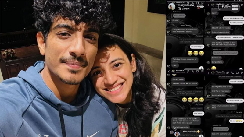 ম্যারি ডি’কোস্তা স্মৃতি মান্ধানারর সঙ্গে পলাশের সম্পর্ক নিয়ে জানতে চান। তখন পলাশ জানান, তাদের মধ্যে সম্পর্কে দূরত্ব তৈরি হয়েছে। স্মৃতি ক্রিকেট খেলতে দেশের বাইরে থাকার কারণে তিন বা পাঁচ মাসে একবার দেখা হতো তাদের।