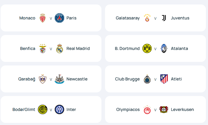 জয়ী আটটি দল শেষ ষোলোয় মুখোমুখি হবে লিগ পর্বের শীর্ষ আট দলের সঙ্গে।
