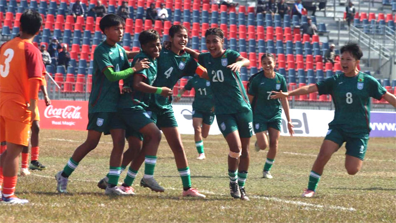 নেপালে চলমান সাফ অনূর্ধ্ব-১৯ নারী চ্যাম্পিয়নশিপে দাপুটে সূচনা করেছে বর্তমান চ্যাম্পিয়ন বাংলাদেশ। নিজেদের দ্বিতীয় ম্যাচে সোমবার পোখরার মাঠে শক্ত প্রতিপক্ষ ভারতকে ২-০ গোলে হারিয়েছে পিটার বাটলারের শিষ্যরা। এর আগে উদ্বোধনী ম্যাচে ভুটানকে ১২-০ গোলে বিধ্বস্ত করেছিল লাল-সবুজের মেয়েরা। ফলে দুই ম্যাচে দুই জয়ে টুর্নামেন্টে শক্ত বার্তা দিল বাংলাদেশ।
