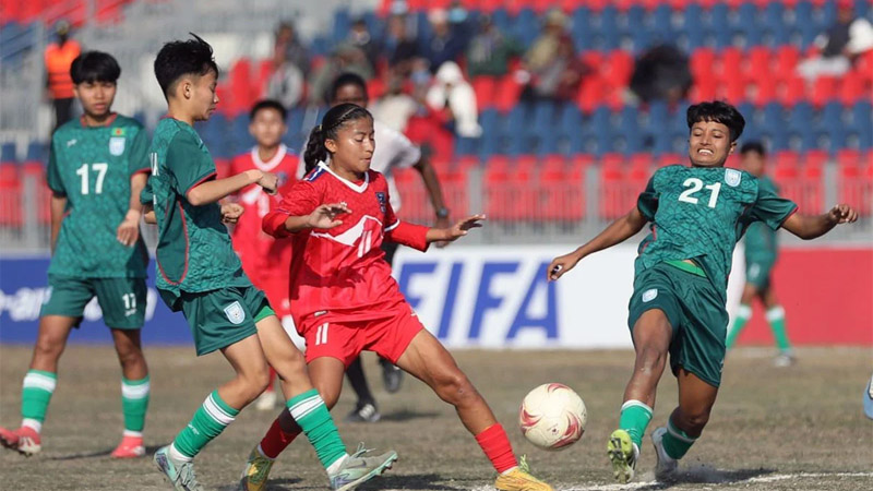 সাফ অনূর্ধ্ব-১৯ নারী চ্যাম্পিয়নশিপে দারুণ ছন্দে ফাইনালে উঠেছে বাংলাদেশ। বৃহস্পতিবার পোখারার রঙ্গশালা স্টেডিয়ামে গ্রুপ পর্বের শেষ ম্যাচে স্বাগতিক নেপালকে ৪-০ গোলে হারিয়েছে লাল-সবুজের কিশোরীরা। টানা তিন জয়ে ৯ পয়েন্ট নিয়ে গ্রুপ চ্যাম্পিয়ন হিসেবেই ফাইনাল নিশ্চিত করে দলটি।