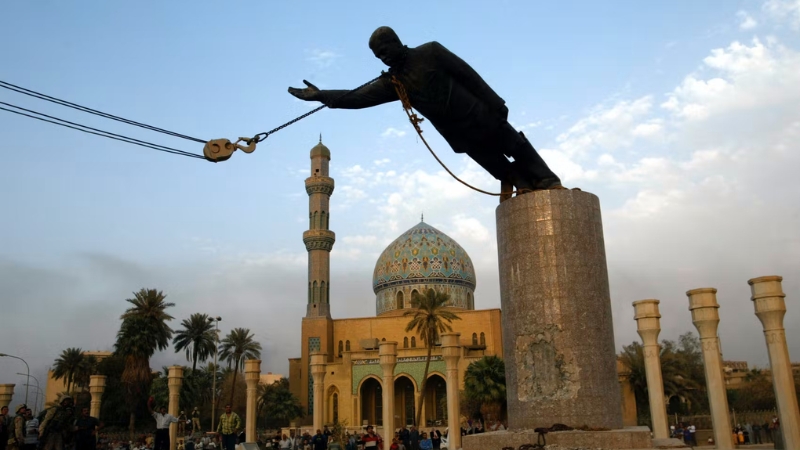 কয়েক সপ্তাহের মধ্যেই বাগদাদের পতন ঘটে। সাদ্দাম হোসেনের মূর্তি ভেঙে ফেলার দৃশ্য বিশ্বজুড়ে ‘মুক্তির প্রতীক’ হিসেবে প্রচার করা হয়।