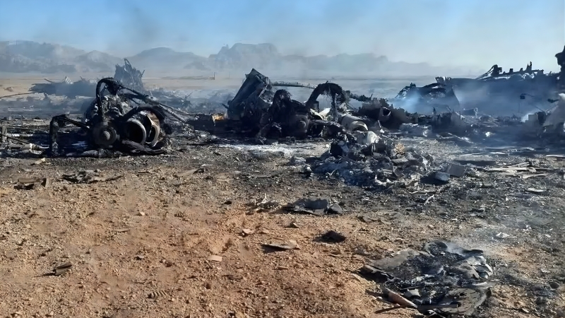 আন্তর্জাতিক সংবাদমাধ্যমে প্রকাশিত ছবিতে ইরানের একটি অস্থায়ী সামরিক ঘাঁটিতে বিধ্বস্ত সি-১৩০ বিমানের পুড়ে যাওয়া ধ্বংসাবশেষ দেখা গেছে। অন্য এক ছবিতে বিমানটি থেকে ধোঁয়া বের হতে দেখা যায়।